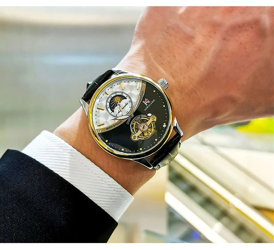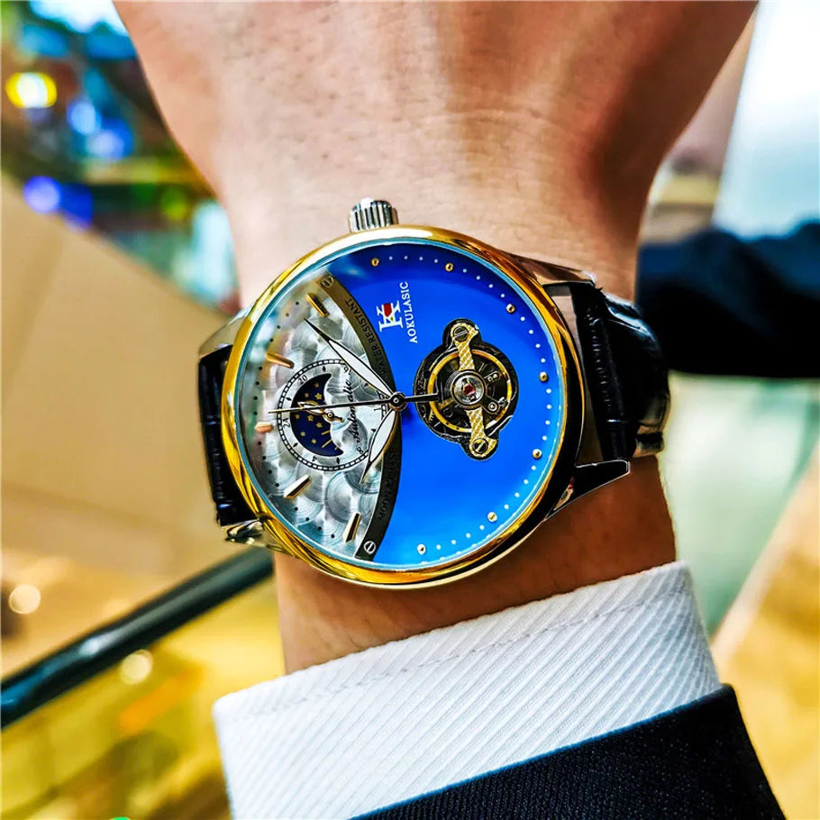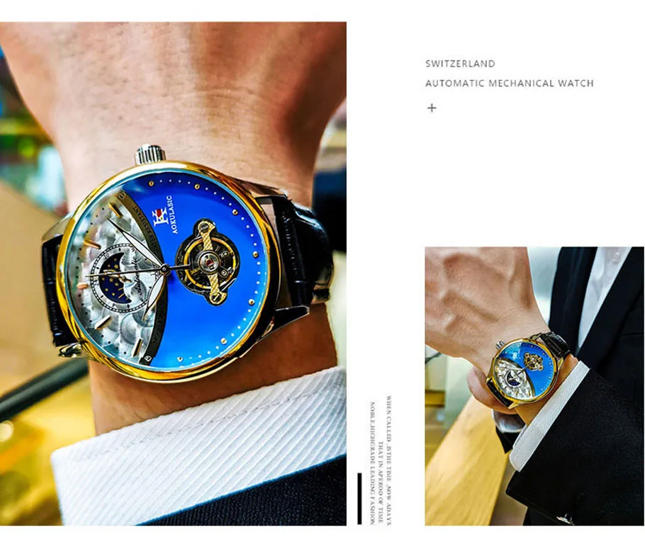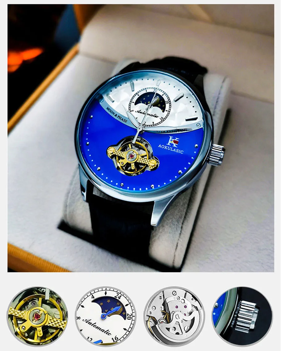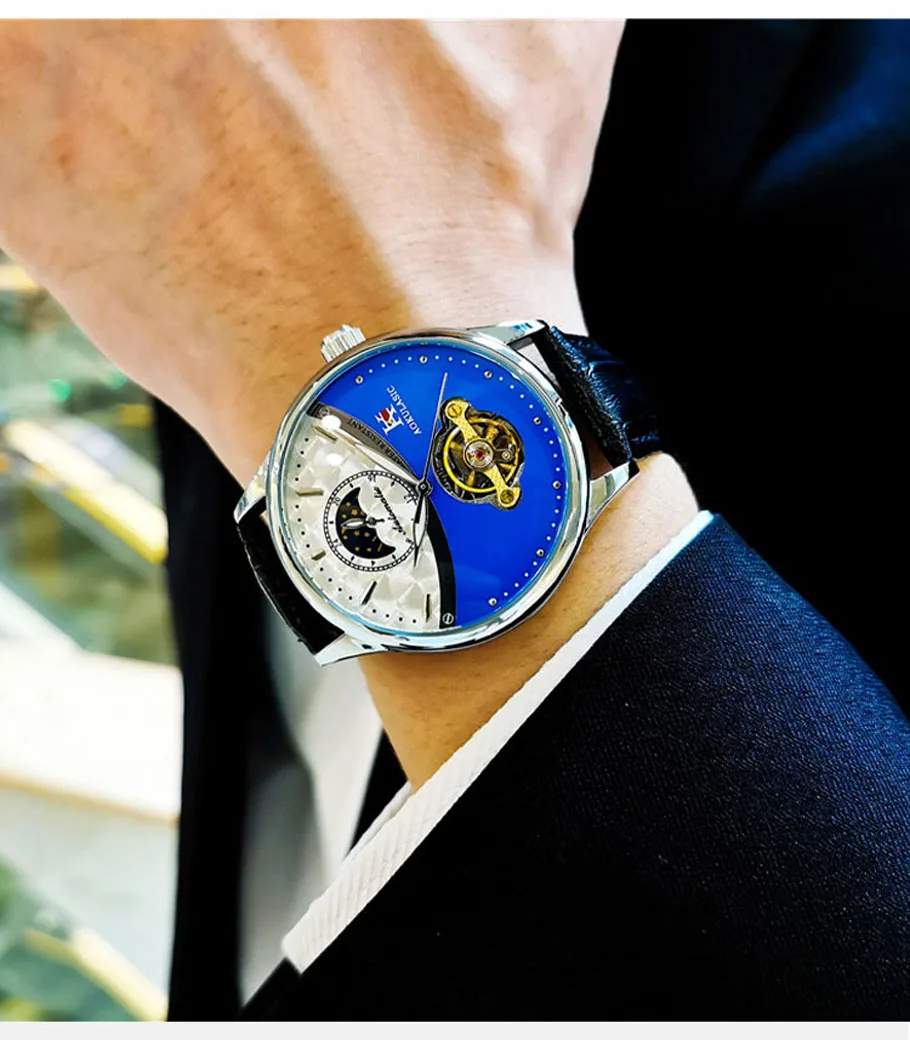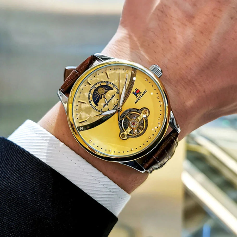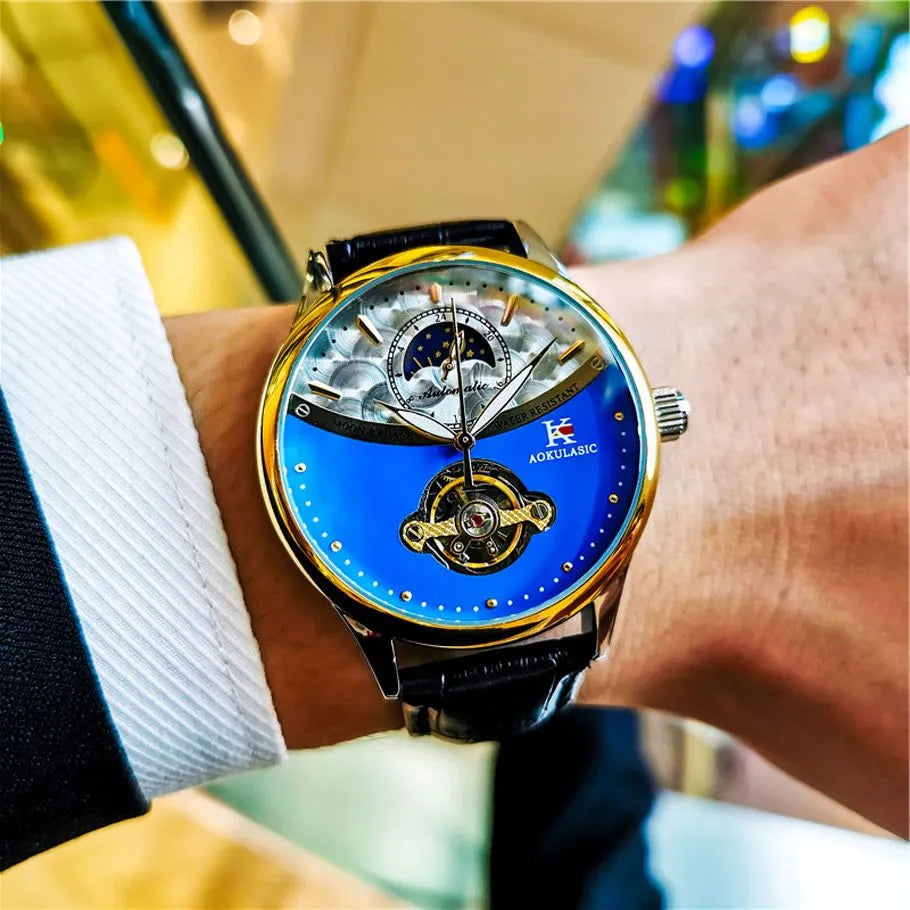 Introducing the Vanguard Royale by Aokulasic, a testament to refined craftsmanship and timeless style. This mechanical wristwatch is designed for the modern man who appreciates the elegance and functionality of classic horology.